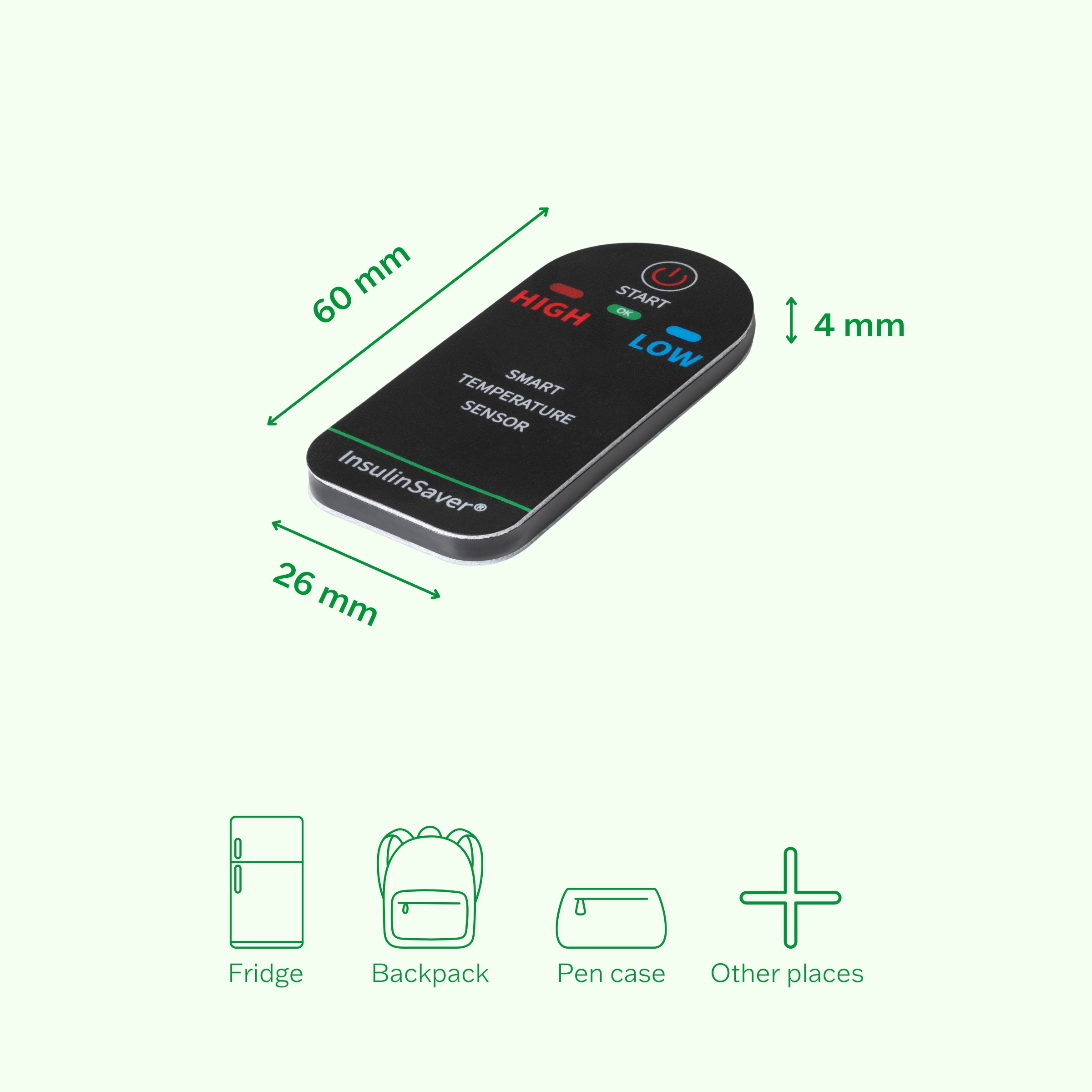 Oavsett om du pendlar mellan hem, arbete och aktiviteter, ser detta paket till att du alltid vet om ditt insulin har utsatts för osäkra temperaturer – utan appar, laddning eller komplicerad installation.